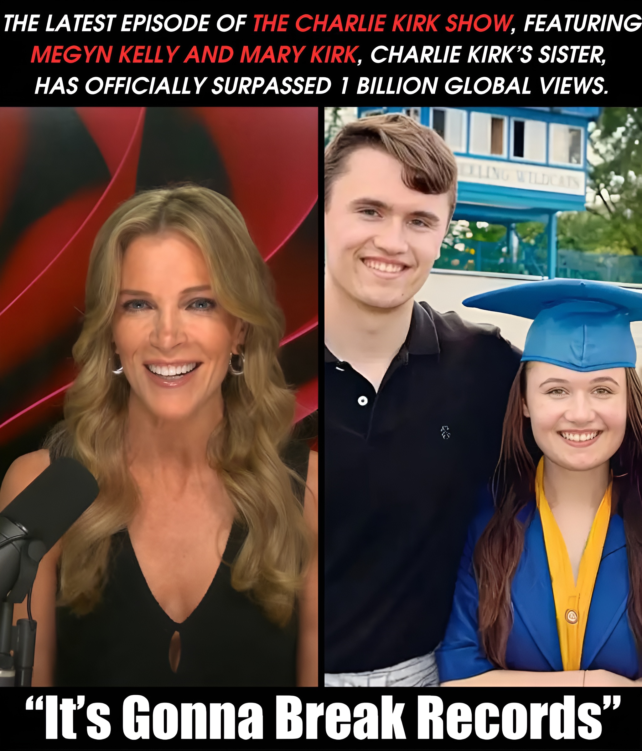 HISTORIC MILESTONE: The latest episode of The Charlie Kirk Show, featuring Megyn Kelly and Mary Kirk, Charlie Kirk’s sister, has officially surpassed 1 BILLION global views. Viewers are calling it “a revolution” and “truth in its purest form,” while media analysts warn that this record-breaking success may mark the beginning of a new era in broadcasting history…